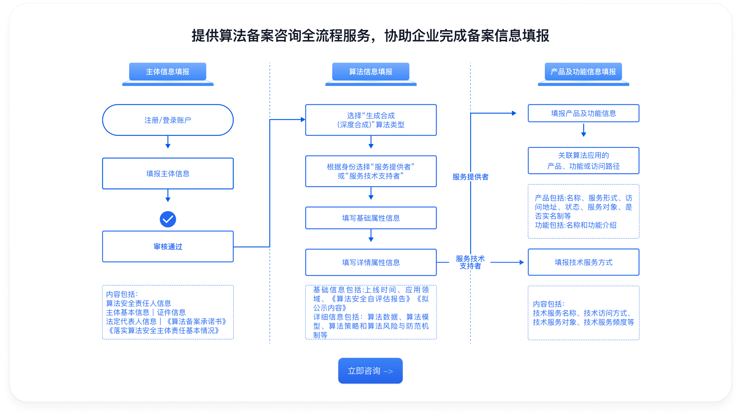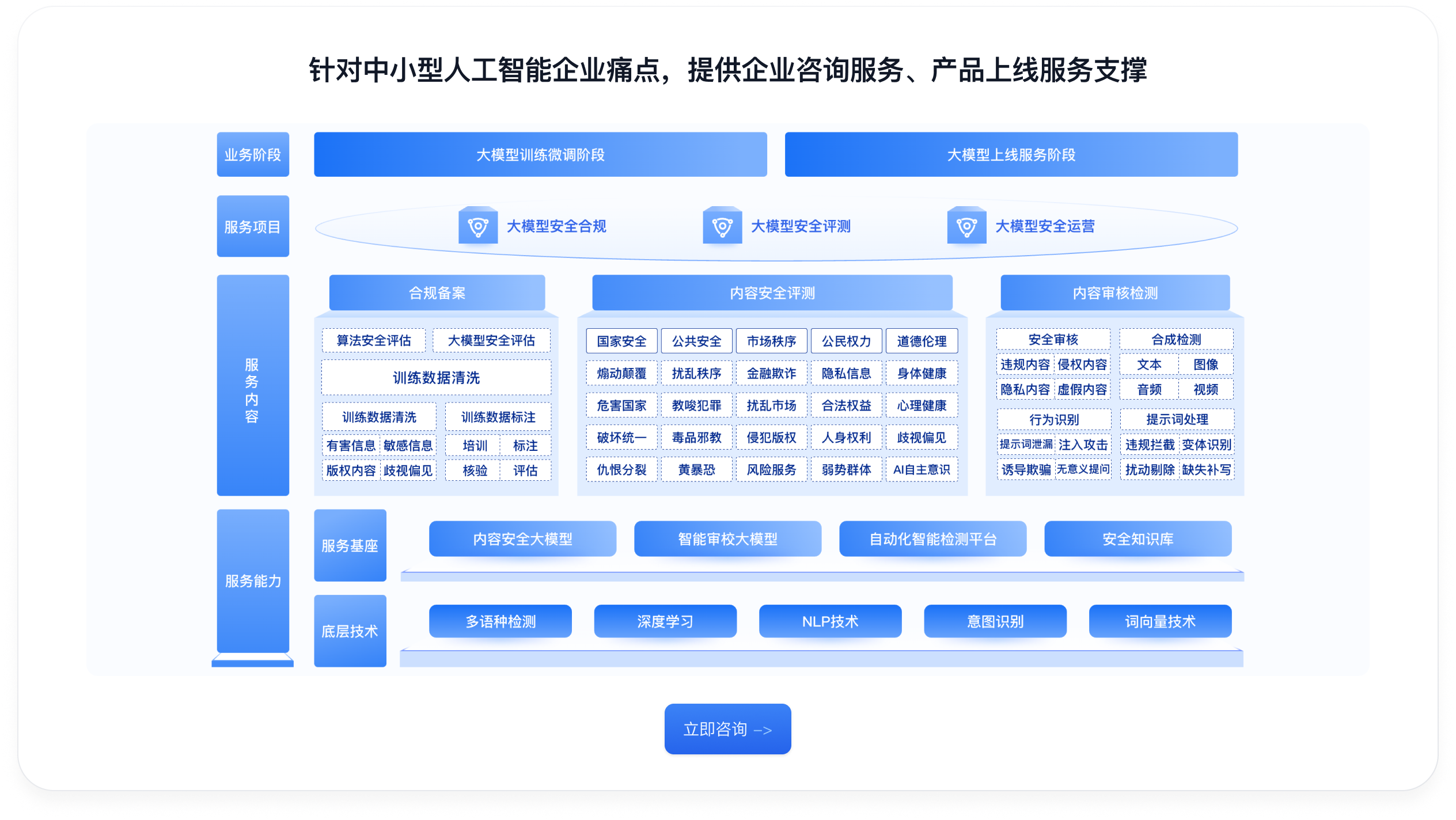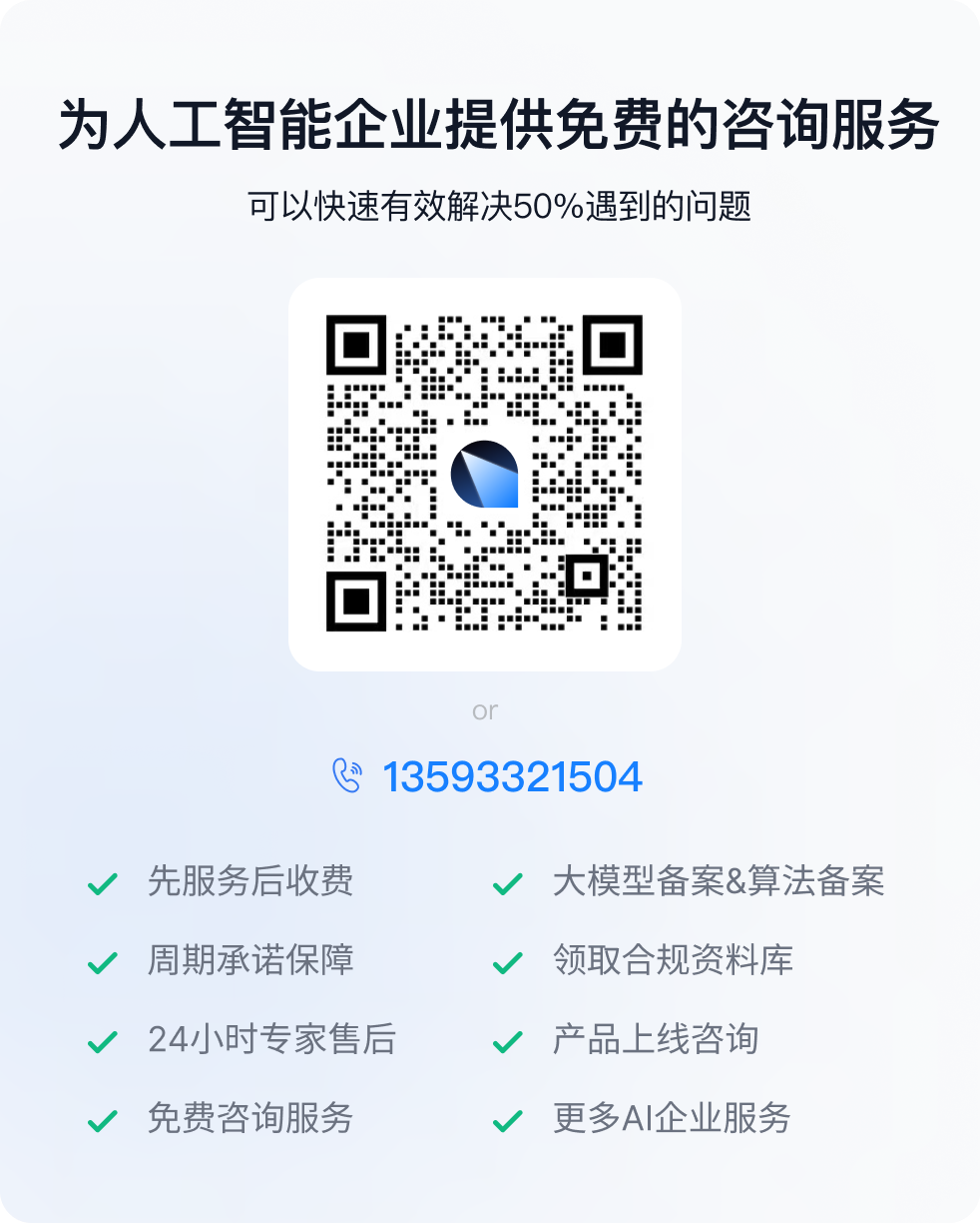 涵盖从合规专家、算法专家、大模型专家多层次的服务团队,提供全方位的服务支撑,解决服务过程中的一切问题!